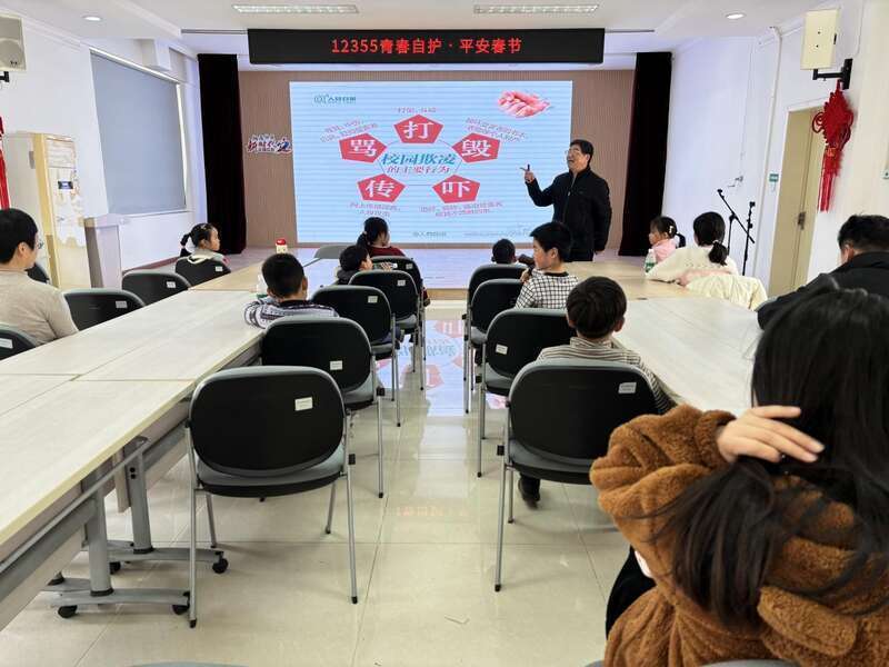 常熟市虞山街道烟雨社区寒托服务点开展防范校园欺凌课程。团常熟市委供图